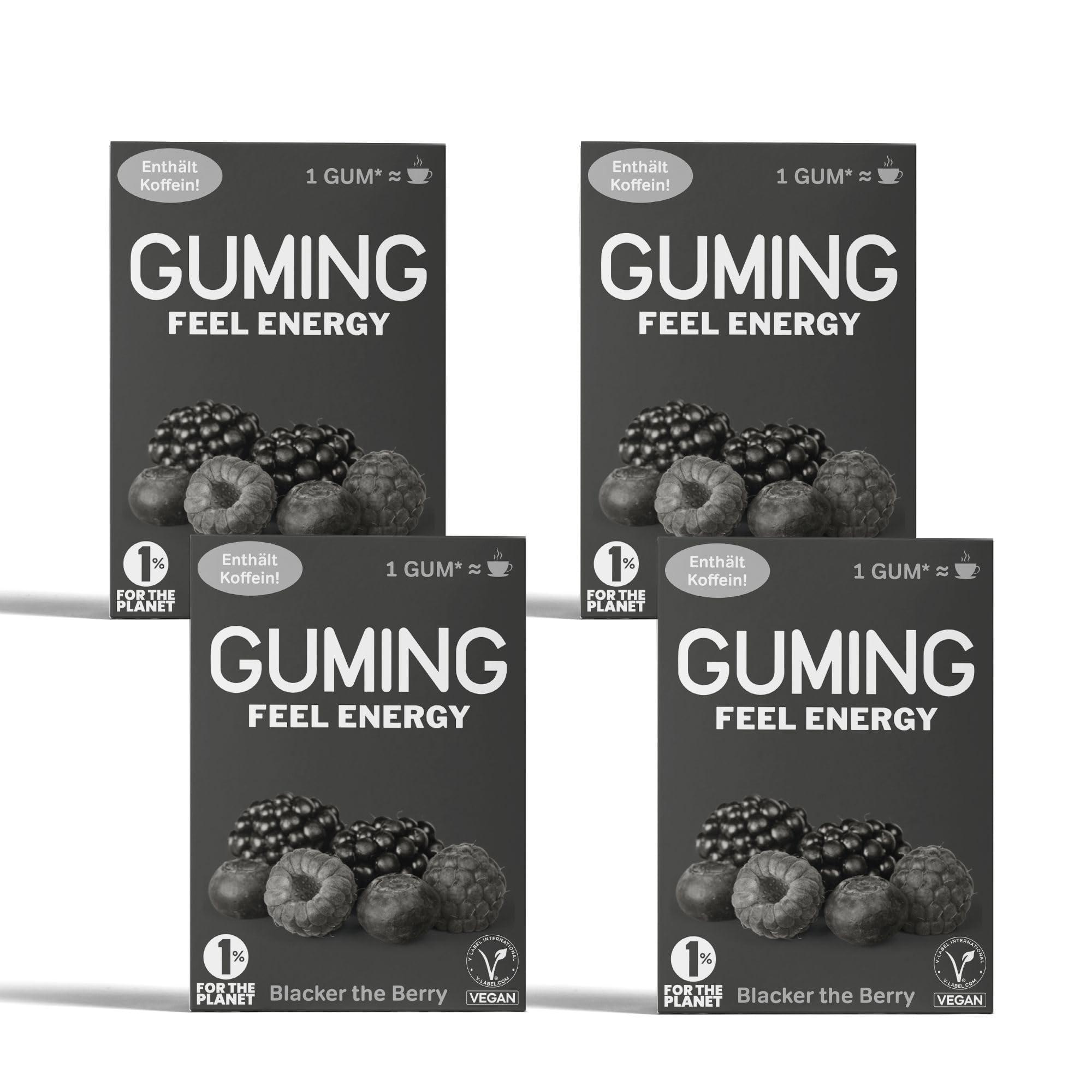 GUMING Energy Kaugummi Blacker the Berry mit Koffein/Vegan zuckerfrei (40 Stück, Beere) | GUMING 40x Energie Kaugummi m